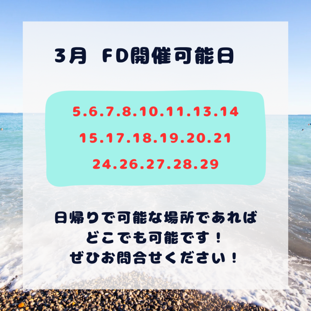 投稿日: 2026年3月4日2026年3月4日 3月FunDive可能な日程のお知らせです!ご興味ある方はぜひご連絡下さい✨️ボート経験ない方はビーチのみも可能です!よろしくお願い致します🙇♀️ 3月日帰りファンダイブ
